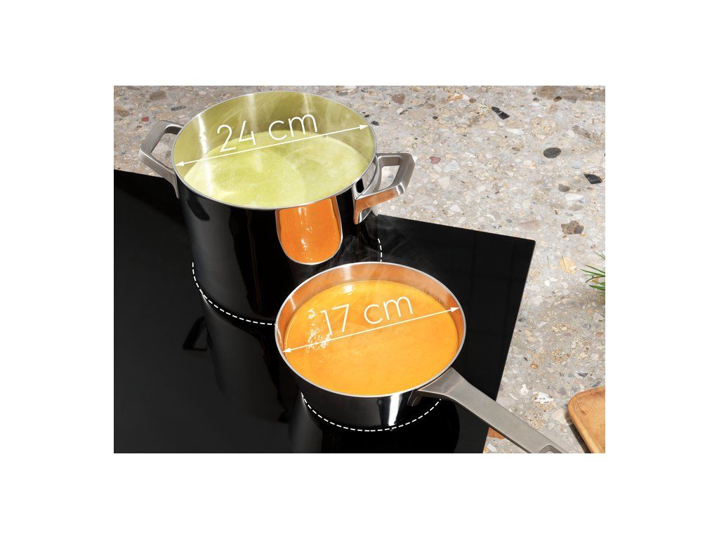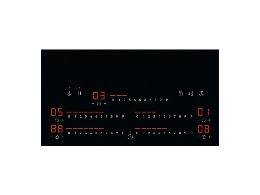 | Ovládacie funkcie: | 3 krokové využitie zvyškového tepla, akustický signál, rýchle ohriatie - funkcia Booster, detský zámok, Double Bridge, Eco časovač, flexibilný Power Management, Heat memory, Hob2hood, Individual zone timers, zámok tlačítok, minútka, pauza, detekcia hrnca, vypnutie zvuku |