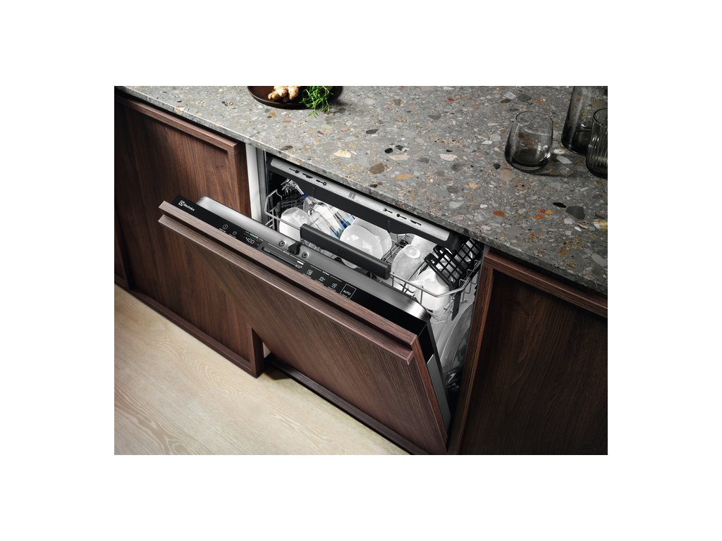 | Vlastnosti horného koša: | 2 sklopné držiaky, 2 sklopné drôtené úchyty na poháre, 2 mäkké gumové špičky , 6 úchytov na poháre na víno, sklopné držiaky na poháre, plastová rukoväť Electrolux, postranné držiaky košíka |