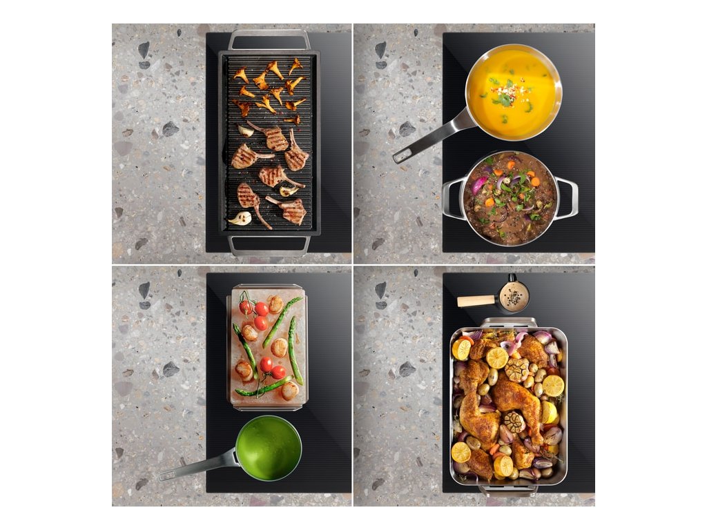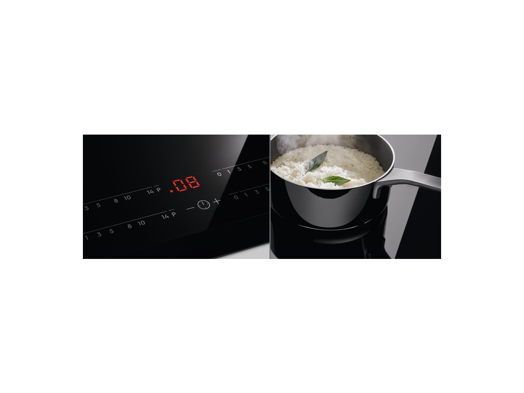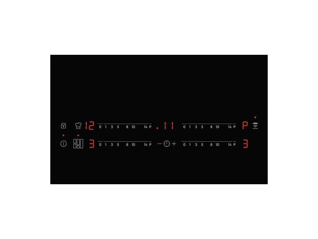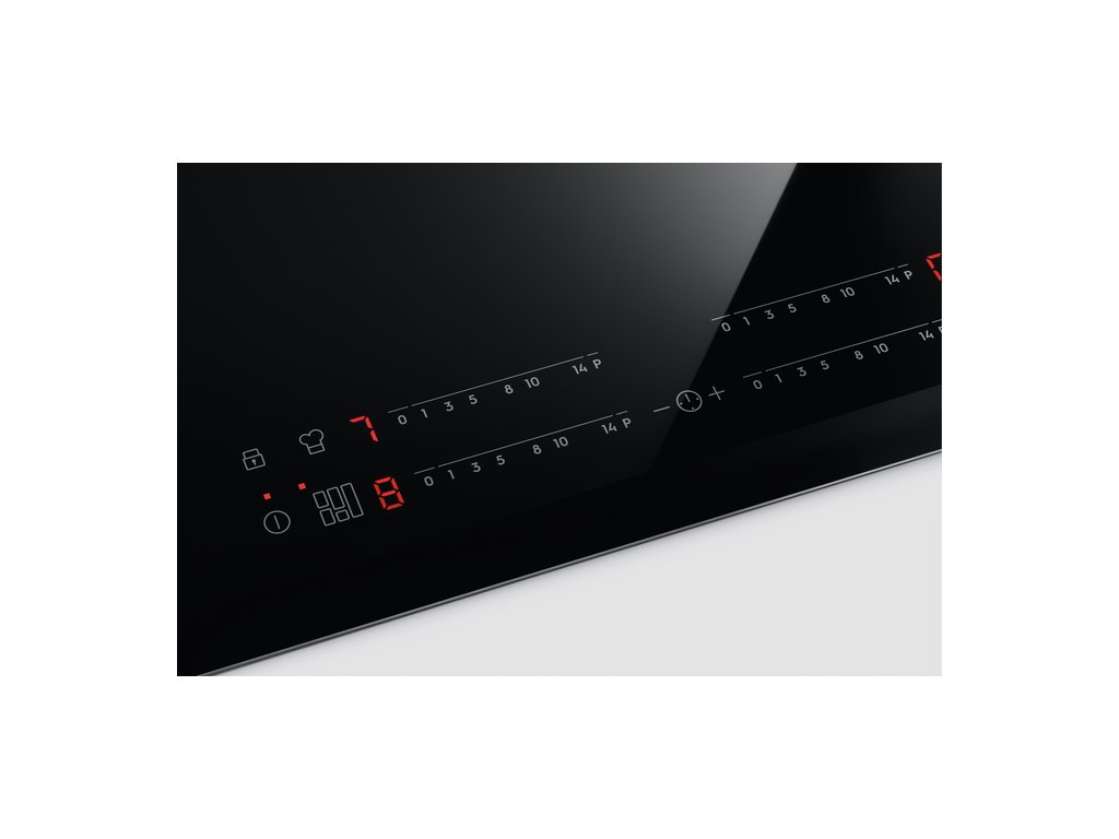 | Ovládacie funkcie: | 3 krokové využitie zvyškového tepla, akustický signál, automatické zahratie, rýchle ohriatie - funkcia Booster, detský zámok, Časovač, Eco časovač, FlexiBridge, Hob-hood connection, zámok tlačítok, minútka, PowerSlide, Vypnutie zvuku, Ukazovateľ času |